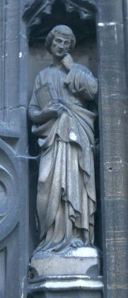 Statue of St Paul on the south door of St Mary's Church, Aylesbury, United Kingdom